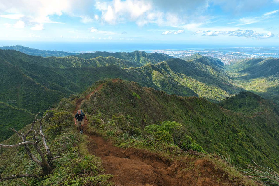 This challenging climb to the summit features narrow ridges, and sheer cliffs. This advanced hike takes you through beautiful Moanalua Valley, up the ridge where are unbelievable views and a rich variety of native trees and shrubs. If you take this hike be ready for muddy, slippery terrain. There are couple rope sections up the ridge that can be intimidating, but they are not hard. At the top you can take a look at the famous Stairway to Heaven a.k.a Haiku Stairs (climbing the actual stairs is illegal).